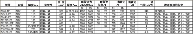 复丝滤布型号规格参数